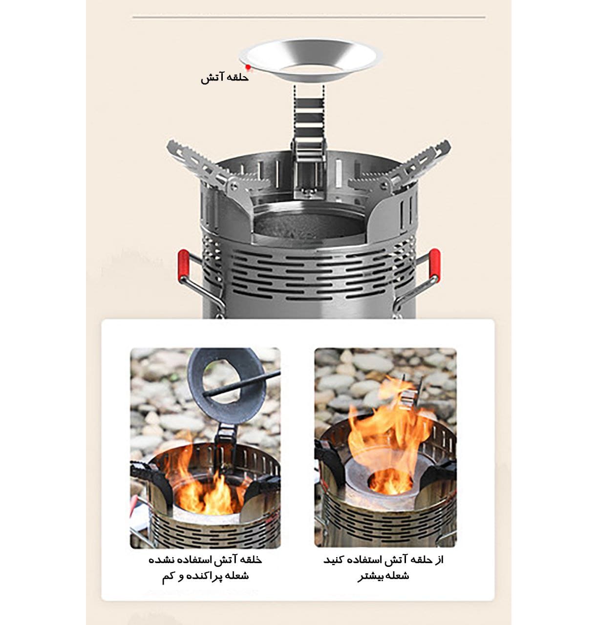 دیگر نیازی به حمل کپسول گاز یا تجهیزات سنگین نداری فقط چوب یا زغال جمع کن و در چند دقیقه غذای گرم و خوش طعم درست کن.